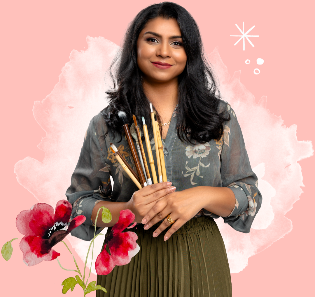 A full-time watercolor artist and a published author based in Bahrain. I specialize in soft, dainty florals inspired by nature and calm moments. Art is my way of slowing down and expressing creativity, and I’m passionate about helping women enjoy the simple joy of creating something beautiful. I’m glad you’re here.